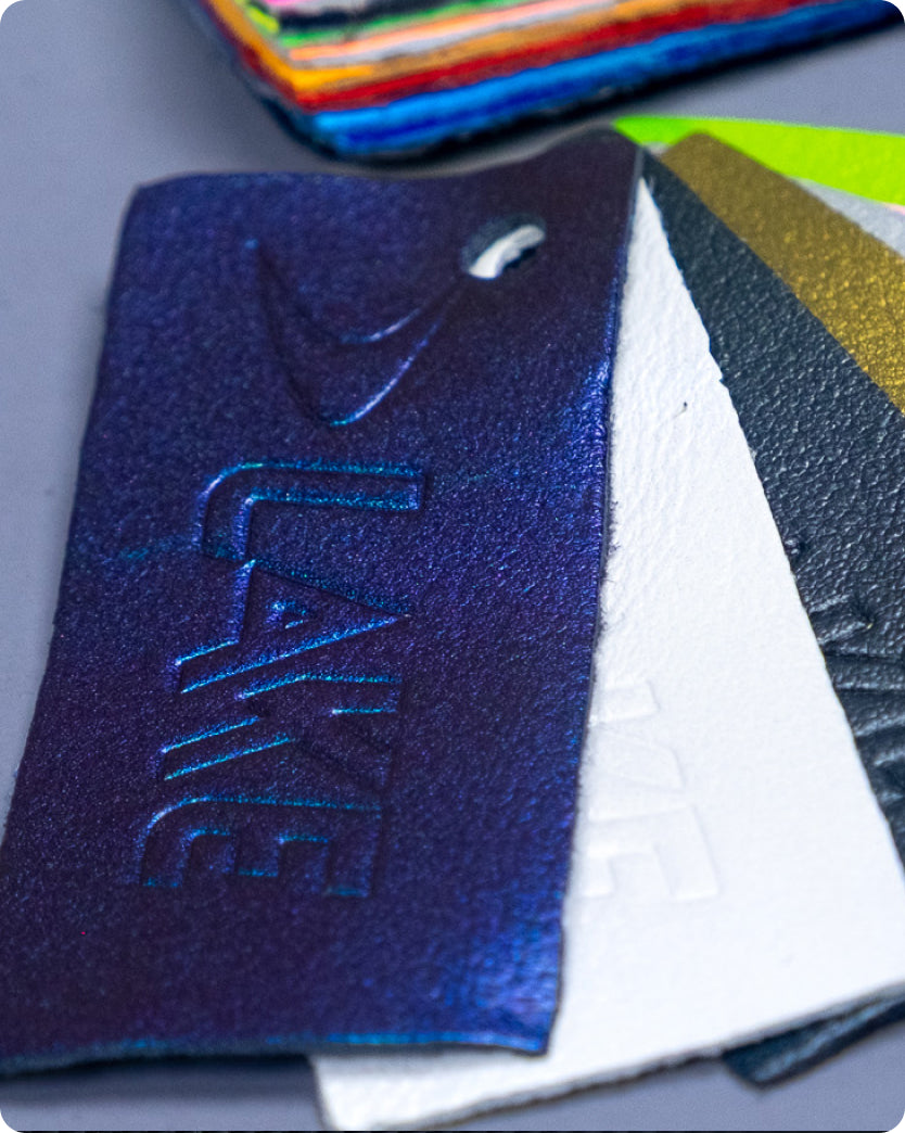 Material inteligente y ecológico creado al reutilizar recortes y restos de la producción tradicional de cuero. Material duradero y consistente que se ve y se siente como cuero genuino, pero con una huella ambiental reducida.